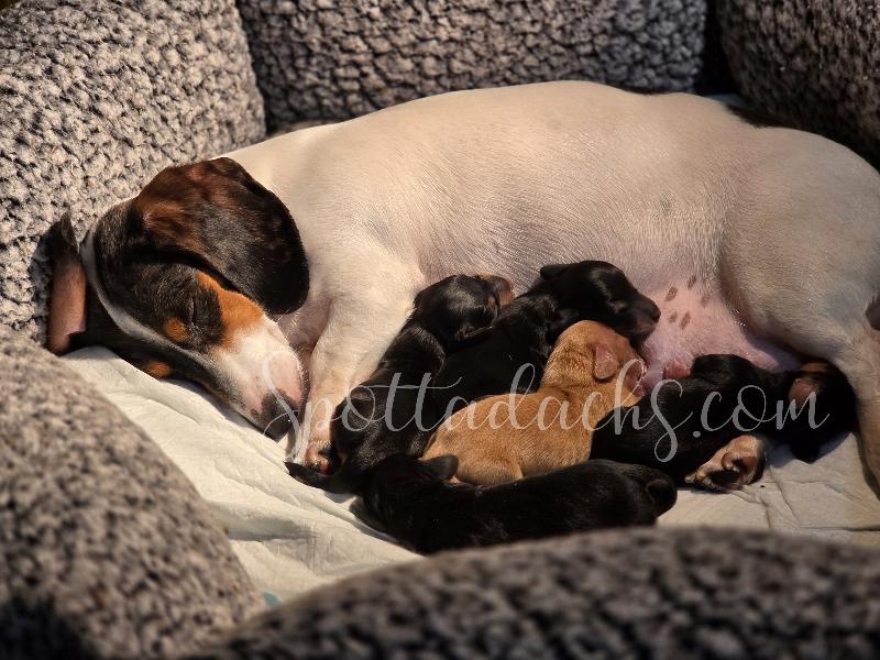 Buying a puppy from Spottadachs does not end when your final payment is made or when the pup goes out the door. Anyone who buys a pup becomes part of the family. We pride ourselves on remaining available to answer questions, calm fears, and provide support for the LIFETIME of your puppy. We are very blessed and grateful that the majority of our buyers return for a second (sometimes third or fourth) puppy.